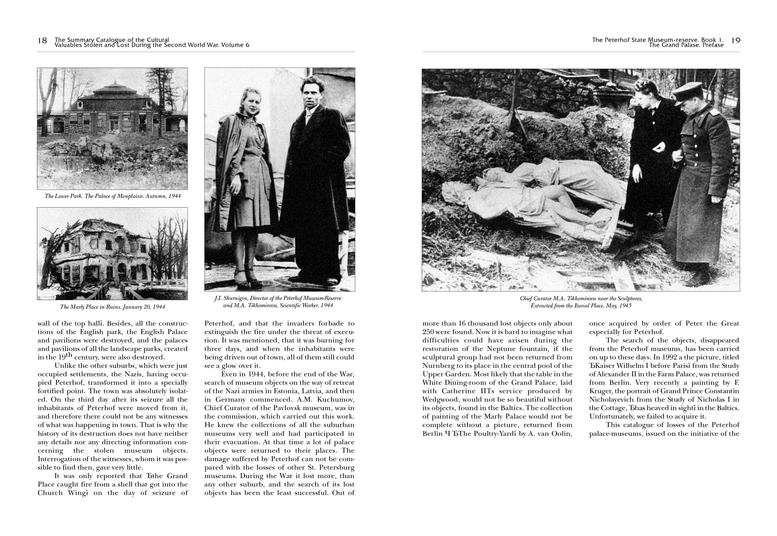 В книгах «Сводного каталога культурных ценностей Российской Федерации, похищенных и утраченных в период Второй мировой войны» впервые за все послевоенные годы публикуется реестр потерь, понесенных российскими музеями, библиотеками и архивами в минувшей войне. В Сводном каталоге представлены попредметные описи и изображения разграбленного и уничтоженного имущества.